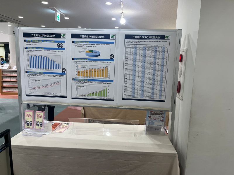 三重県内で展開されている消防団応援の店の紹介等のポスターを作成して来庁者へ消防団を紹介いたしました。